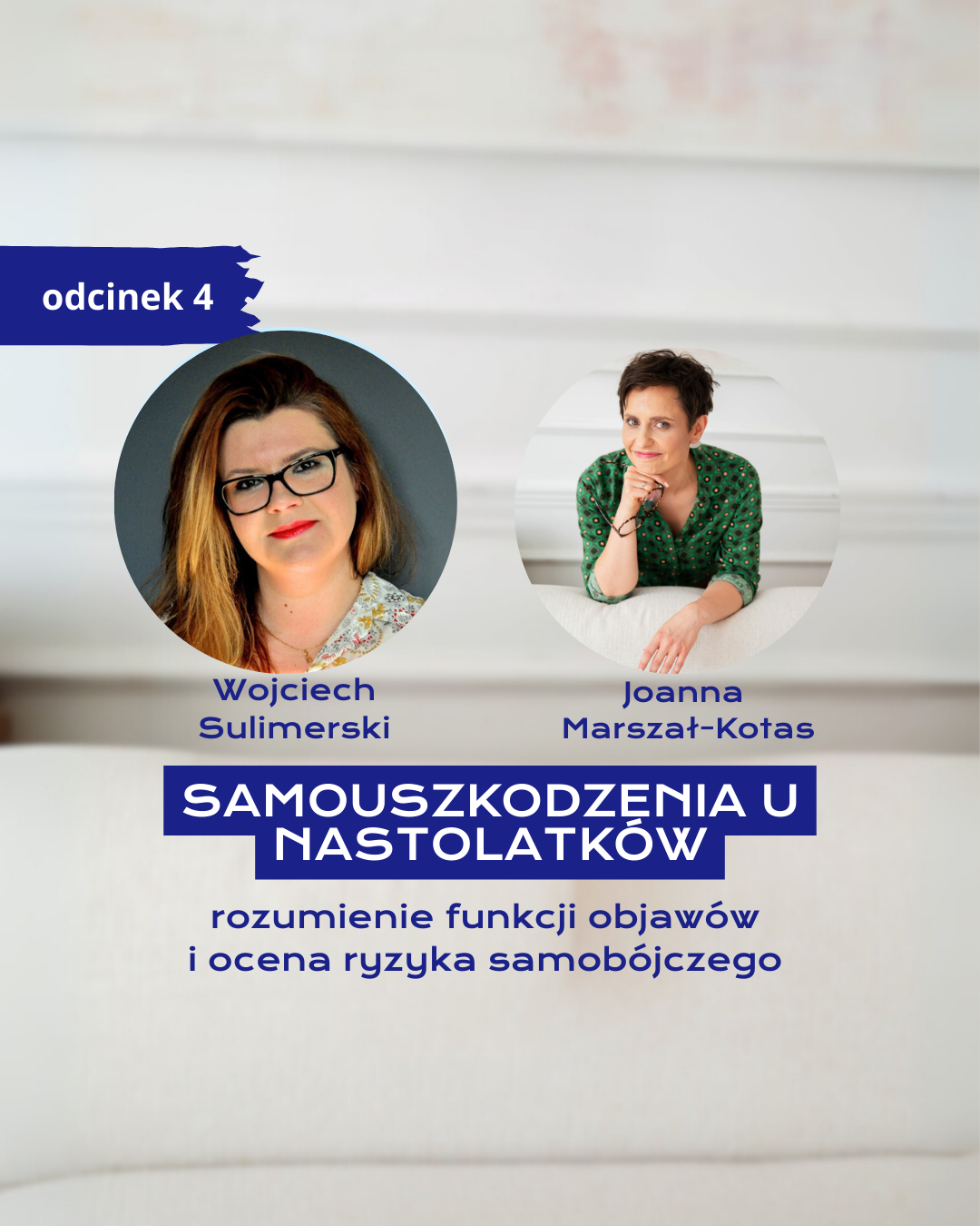 Do bardzo praktycznej rozmowy o samouszkodzeniach, o rozumieniu procesu leczenia, współpracy z rodzicem, różnicowaniu zachowań autodestrukcyjnych z tendencjami suicydalnymi od tych bez tendencji zaprosiłam Joannę Klocek, psycholożkę i psychoterapeutkę, która od wielu lat pracuje z dziećmi, młodzieżą i dorosłymi.